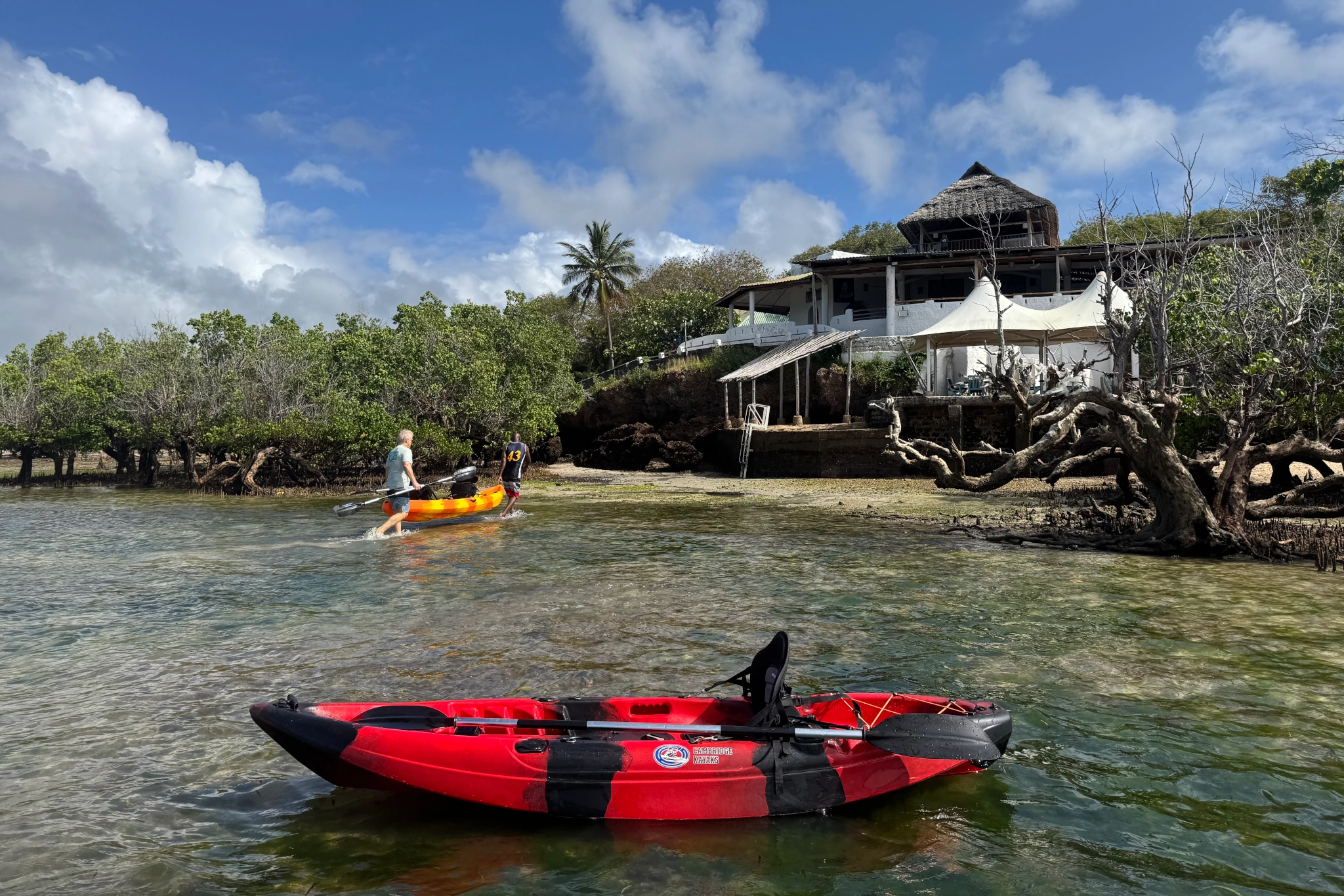 Experienced kayakers can cross over to Wasini Island at low tide for a stroll along the island's shores for a unique close up view of the coastal forest and the largest concentration of Baobab trees in Kenya.